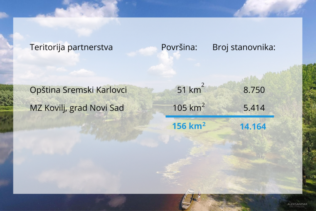 Područje Partnerstva K2 je koherentno, jasno definisano, sa stanovništvom dva naseljena mesta, u okviru teritorije dve jedinice lokalne samouprave, Sremski Karlovci i grad Novi Sad mesna zajednica Kovilj. Teritorija obuhvata površinu od 156 km2 sa 14.164 stanovnika.
